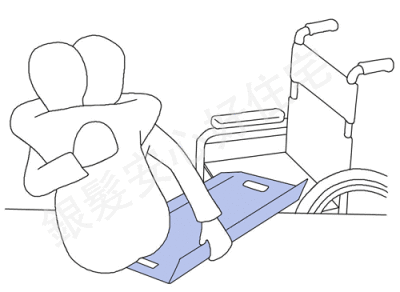 從照護床移動至輪椅或可攜式馬桶,大多數為樹脂材料的板狀輔具。鋪設於臀部做移動的動作,移位時要注意有褥瘡的當事人。為了易於移位至輪椅,使用的輪椅可採扶手能推入桌子、扶手能上掀或卸下的輪椅形式(圖1)。